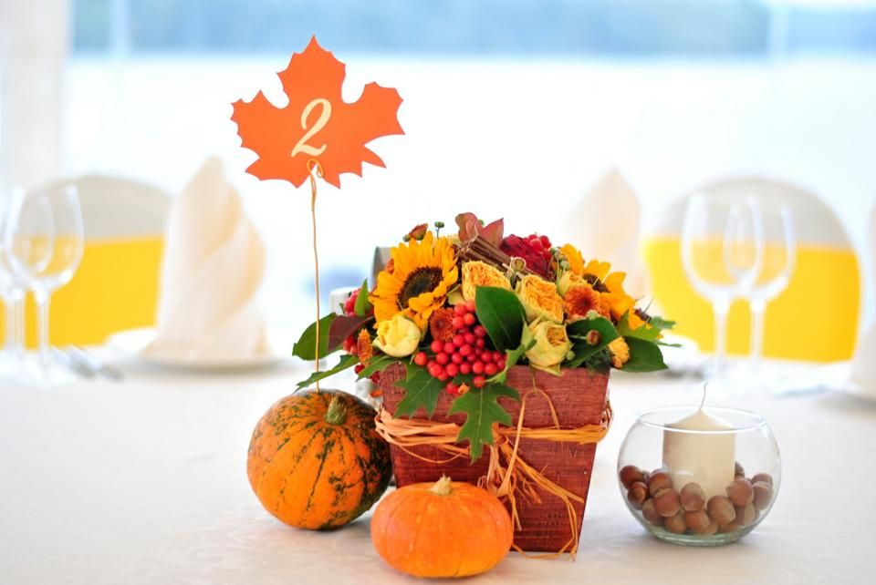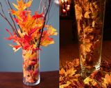 Замените привычные лепестки роз и насыпьте в вазу опавшие яркие листья. Композицию могут дополнять веточки деревьев.