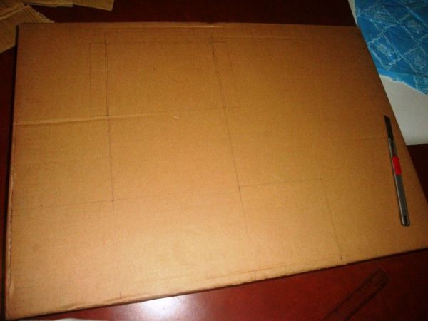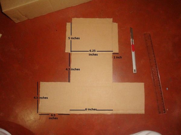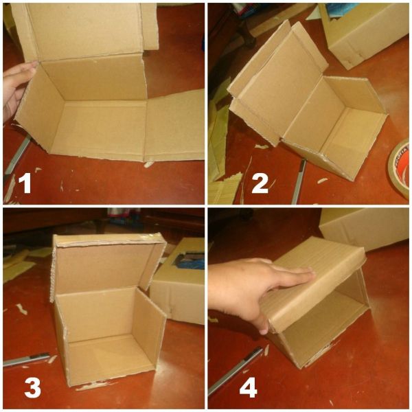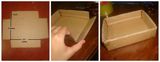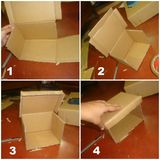 1) Согласно инструкциям, изображенным на картинке, нарисуйте на листе картона контуры шкатулки и вырежьте по шаблону детали.