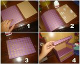 4) Затем следует взять кусочек картона (формат которого 10,6 х 14,4 см), оклеить его с двух сторон бумагой из набора, и установить сделанную перегородку на предназначенное ей место.
