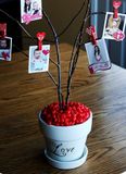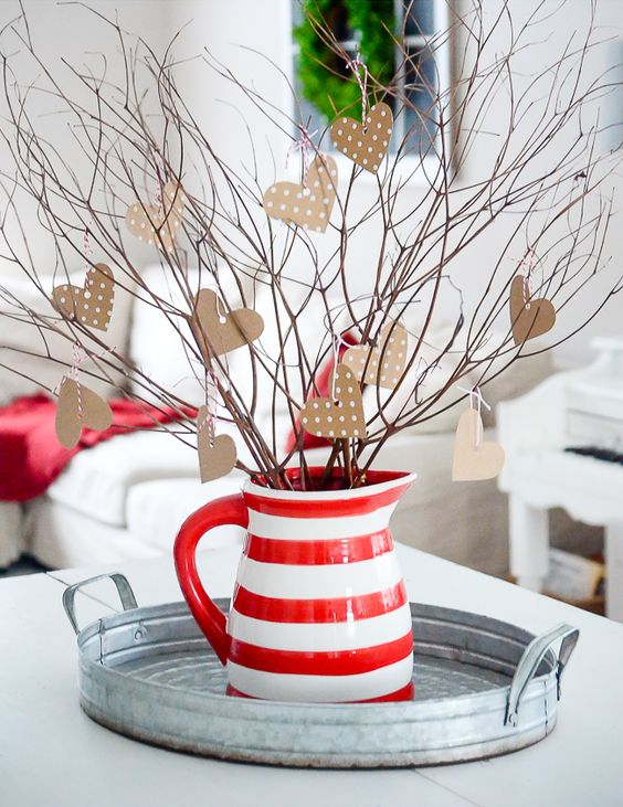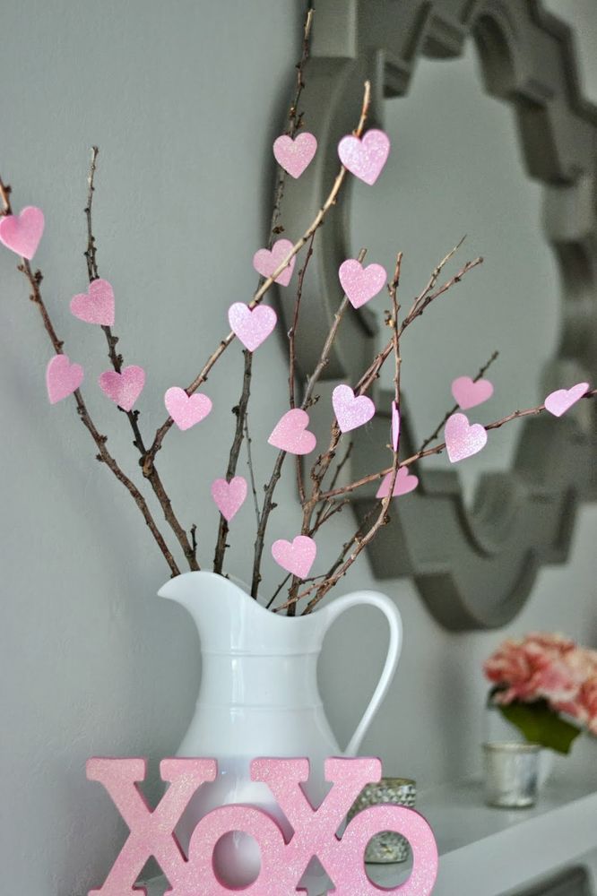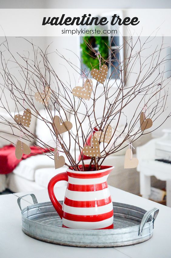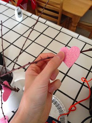Шаг 3: Приклейте сердечки к веткам клеевым пистолетом или клеем ПВА. Как вариант вы можете сердечки не приклеивать, а повесить на бечевку или нитку и оставить дополнительную кучу сердец вокруг (с бечевкой уже на нем) для членов вашей семьи, чтобы писать записочки друг другу и вешать на дерево. Было бы очень мило.