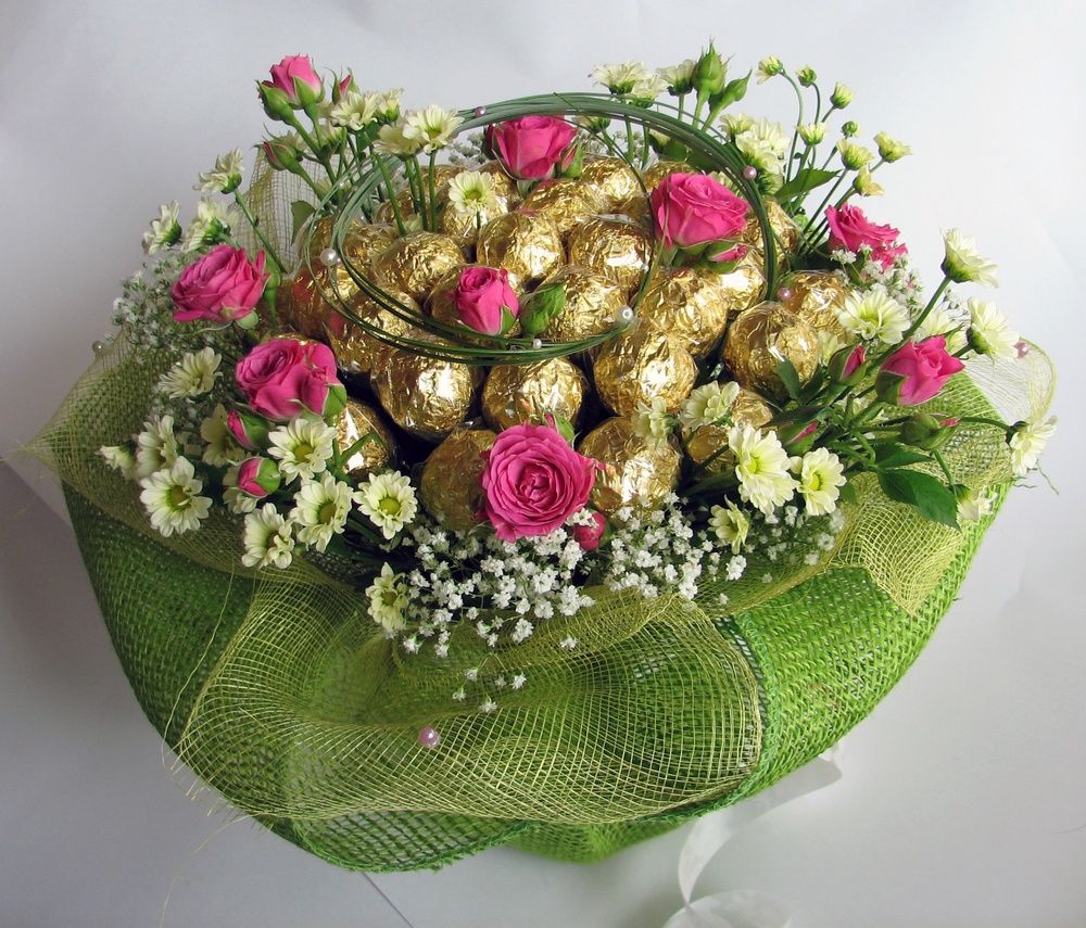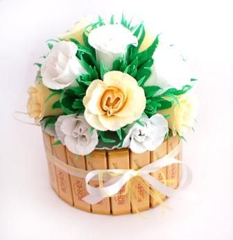 Такой оригинальный подарок точно не оставит равнодушным любителя сладкого! А представьте, как обрадуется учительница в школе или коллега на работе. Умение делать подобные букеты точно не будет лишним. Приступим?