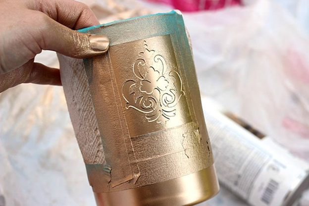4. Дайте просохнуть, после этого, аккуратно снимите малярную ленту и трафарет.