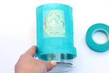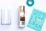 2. Закрепите малярной лентой трафарет. Следите, чтобы трафарет плотно прилегал к поверхности стекла. Заклейте малярной лентой верх емкости, чтобы краска не попала внутрь.