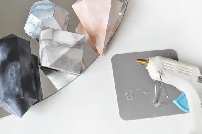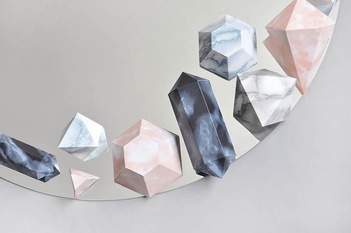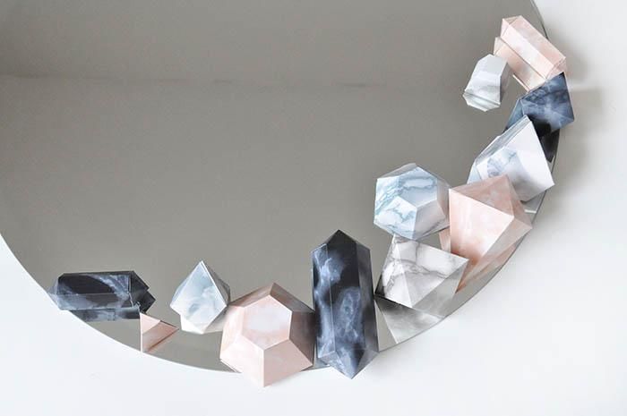 Теперь вам остается расположить бумажные кристаллики на зеркале в виде такой композиции, какую вы сами пожелаете на нем видеть. Используйте двухсторонний скотч или же клей-пистолет, в зависимости от того, временный ли вы хотите сделать декор или наоборот.