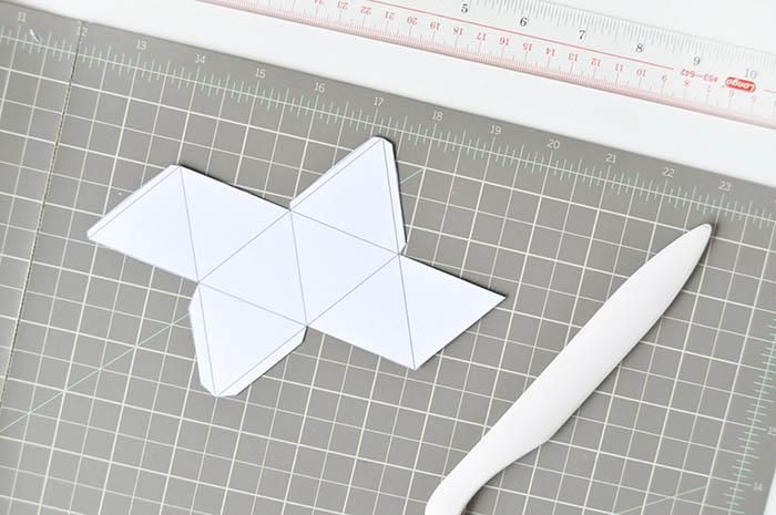 Теперь вам необходимо вырезать заготовочку по шаблону и пройтись по линиям сгибов с помощью любого стрежня ручки, которая не пишет и т.д..