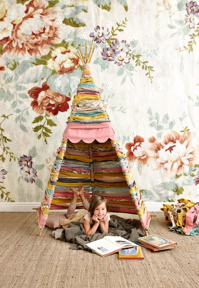 Дети любят маленькие домики, типи, вигвамы. Им нравиться иметь свое пространство, где хозяйничают только они. Внимание всем ... сегодня покажу, как сделать своими руками красивую модель типи, и я уверена, что вам она понравится. Для этого нет необходимости, быть экспертом в швейном деле или пользоваться швейными инструментами ... потому что вы обойдетесь без них! Да! Без использования шитья! И в чем еще главная прелесть, смело подключайте к этому занятию ваших детей! Вместе своими руками вы сможете смастерить это типи. Отлично! Просто! Весело! При этом вы можете сочетать разные ткани, какие нам нравится, или если у вас есть на хранении остатки тканей запросто используйте их.