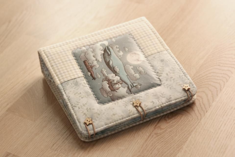 Когда занимаешься изготовлением винтажных изделий своими руками, важно обращать внимание на детали. Возьмите наш флисовый уплотнитель и аккуратно наклейте на него все детали. Получится обложка-заготовка