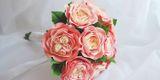 Использовать готовые цветы можно как угодно. Ими можно декорировать заколки, ободки для волос, делать из них бутоньерки или даже букеты невесты. Важный момент - место крепления нужно задекорировать атласной лентой или кусочком фоамирана, подобрав его под цвет готового букетика.