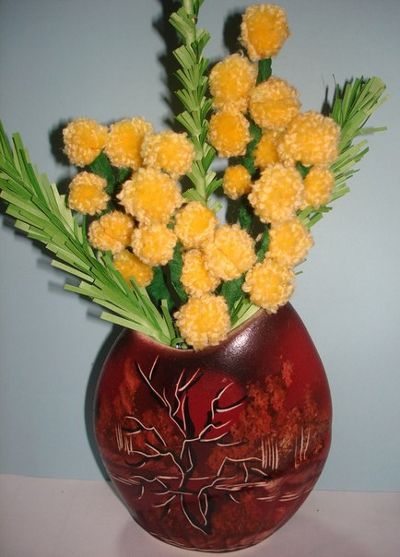 Чтобы изготовить цветы из помпонов приготовьте: