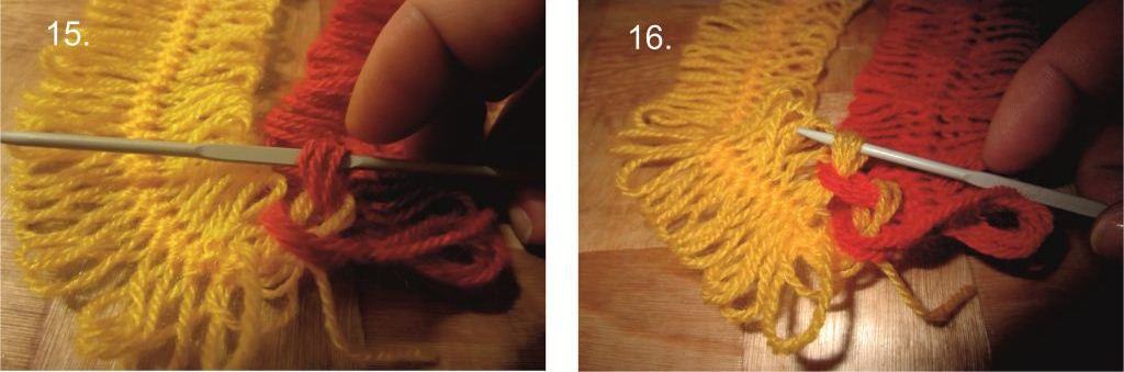 Свяжите еще пару таких полотен, а потом соедините их с помощью крючка. Оригинальный шарфик готов!