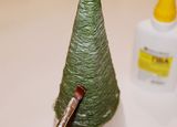 Когда изделие высохнет, снимите булавки и вытяните конус. Обработайте основу конуса, пришив кружок из ткани. После этого задекорируйте вашу елочку бусинами (или другими украшениями, по желанию).