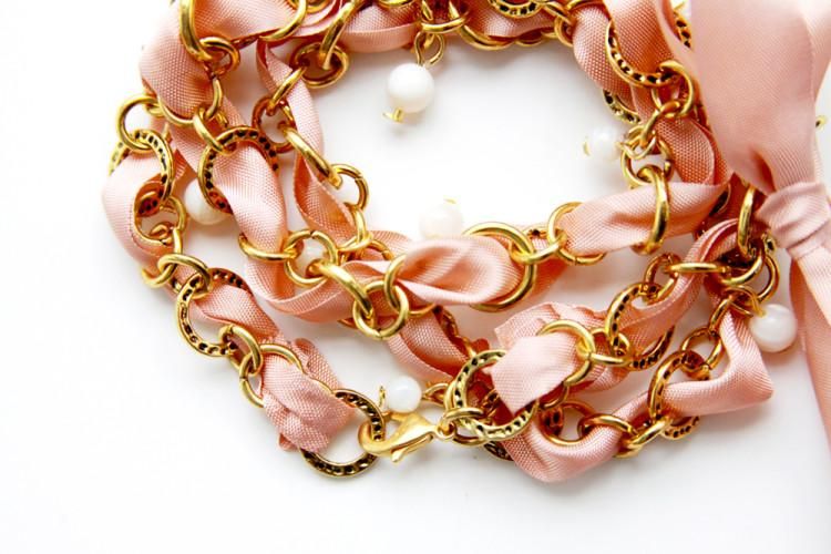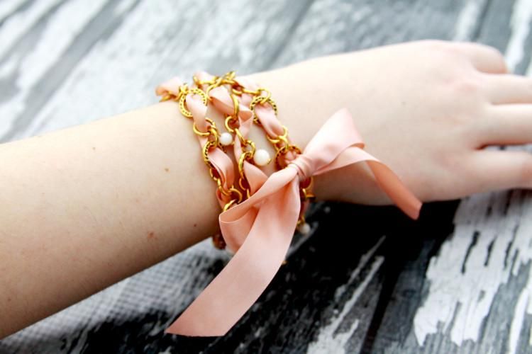 Аксессуаров много не бывает! К новому сезону можно обновить свой арсенал бижутерии стильными недорогими украшениями. Яркий браслет из ленты и цепочки станет удачным дополнением вашего образа. В этом мастер-классе мы расскажем, как сделать такой браслет. Браслет изготавливается очень просто, его цвет можно подобрать к любому наряду. Отлично такой браслетик подойдет в качестве недорогого, но милого подарка.