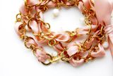 Сквозь свободный край цепочки протяните еще одну ленту, так чтобы два конца длиной около 25 см встретились. Завяжите два края лента в бантик.