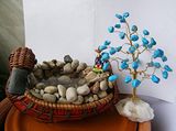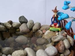 Камни должны быть разными по форме и размеру, но не очень большими. Хотя здесь размер нужно подбирать пропорционально емкости для воды и всей конструкции в целом. Если взять очень большие камни, то не останется места для воды. Лучше, если камни будут округлой формы, ведь именно такие в природе располагаются возле водоемов. Кроме этого, часть камней должна быть плоскими. Это поможет эффективно разместить камни внутри емкости с водой.