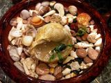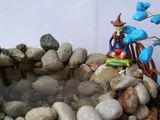 - Все пустоты между мисочкой и декоративной емкостью заполняем камнями. Камни нужно подбирать так, чтобы между самим камнями было как можно меньше пустот, т.е. камни, в идеале, должны плотно прилегать друг к другу.