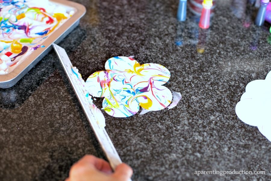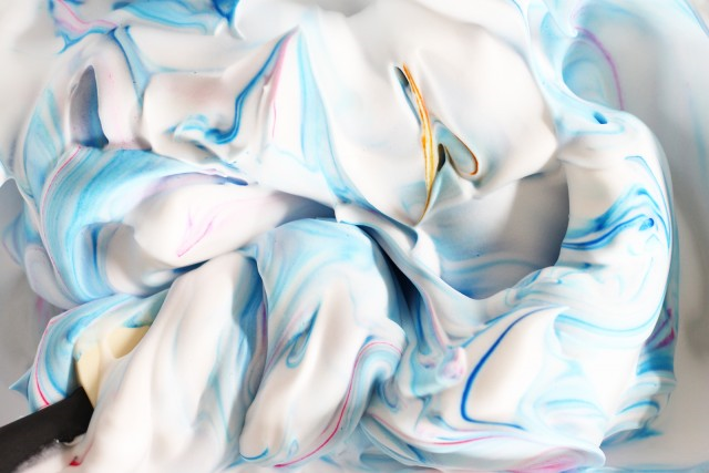 Вернитесь в крем для бритья и добавьте еще пару узоров. Вы можете повторять этот процесс до тех пор, пока цвета не будут слишком запутаны. Если слишком много красителя, вы всегда можете добавить больше крема для бритья. Или, если слишком много белого пространства, вы всегда можете добавить несколько капель разных цветов.