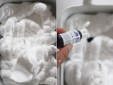 Поместите ее на бумажное полотенце. Возьмите линейку и от одного угла, соскребите крем для бритья одним движением.