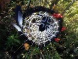 По своему вкусу украшаем паутину, вставляя в ивовую основу веточки шиповника, перья птиц и прочее.
