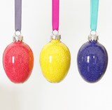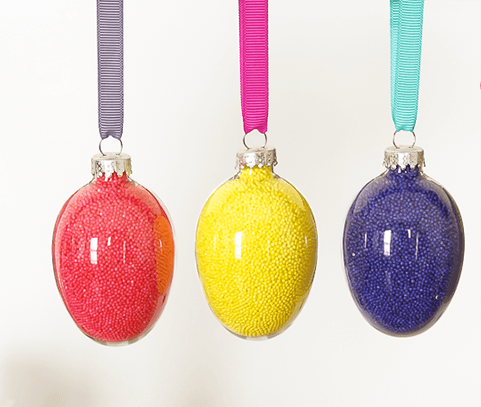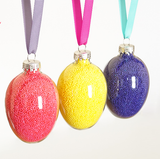 Но если вы хотите подарить кому-то эти украшения, обвяжите лентой вокруг яйца, будет тоже очень мило! В любом случае они очень яркие и красочные, а делать их вместе всей семьей это так весело!