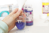 Начните с извлечения верхнего металлического колпачка у стеклянной игрушки. Будьте предельно осторожны, не торопитесь, чтобы не повредить игрушку. Затем с помощью воронки засыпьте кондитерскую посыпку во внутрь игрушки.