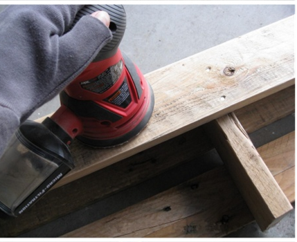 Зашлифуйте доски шлифовальной машиной. Внутри поддона зашлифуйте вручную.