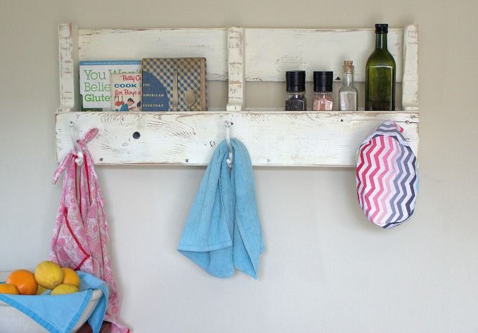 Используйте эту вешалку и полку на кухне, чтобы держать кулинарные книги, специи, фартуки, полотенца.
