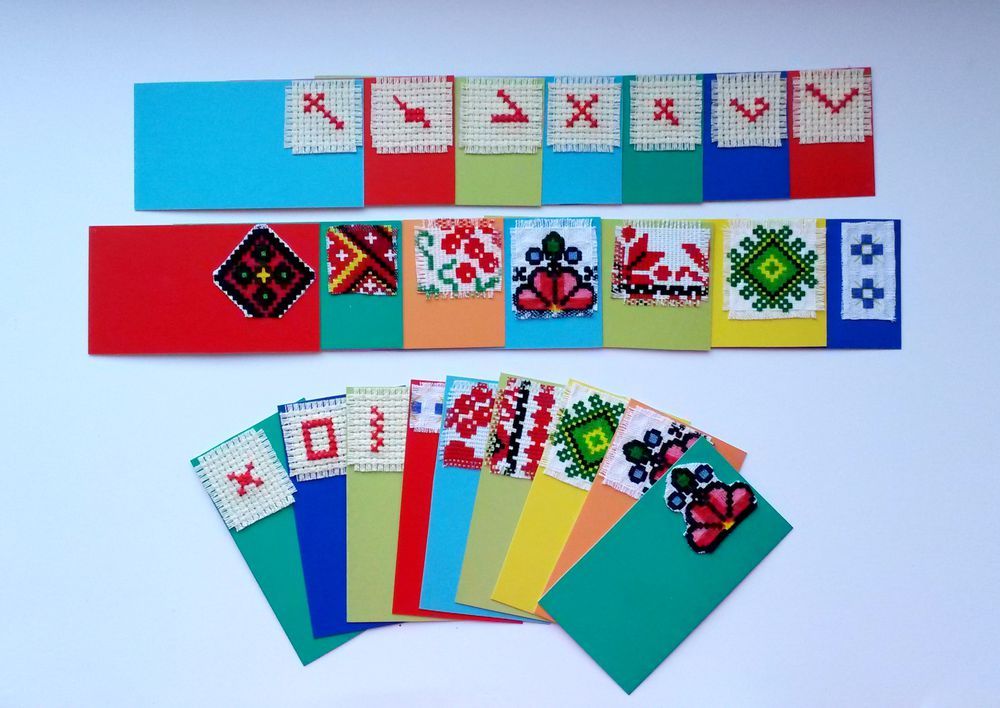 Более сложный вариант: взять кусочки белой канвы и вышить маленький узор. Круче всего будет - ваш собственный логотип. Сначала придумать - а потом воплотить на ткани.
