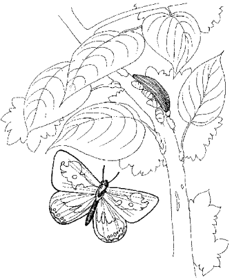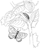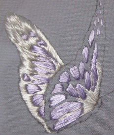 Бабочкино туловище вышейте серыми нитками и косой гладью, а усики – традиционно, стебельчатым швом.
