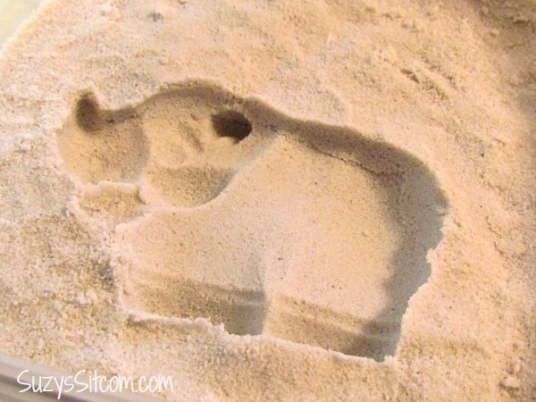 Хорошо вдавите игрушку в песок, создавая образ в песке.