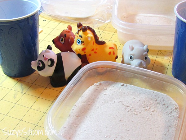 Если хотите сделать несколько таких картинок, добавляйте понемногу песка в контейнер, перед очередной игрушкой.