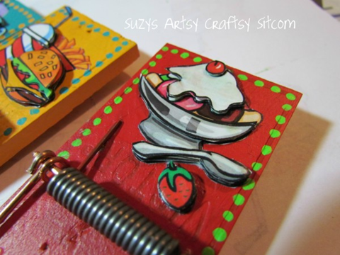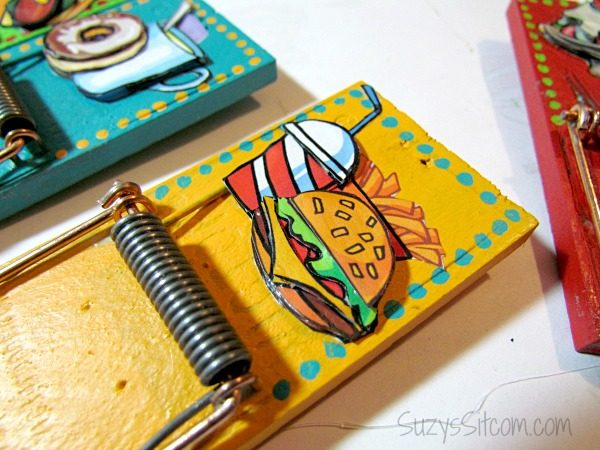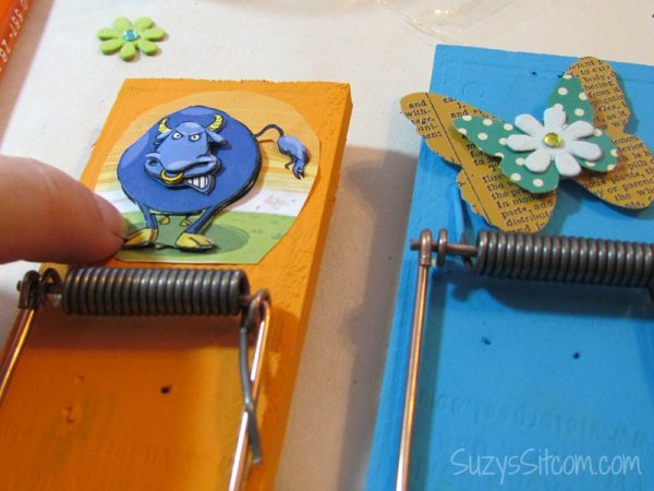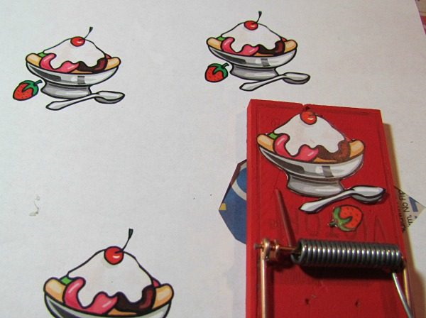 Выберите четыре ярких цвета и покрасьте древесину каждой мышеловки.