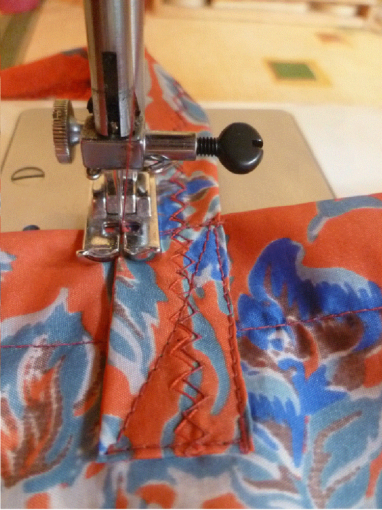 Утюжим, швы заглаживаем на сторону тех клиньев, по которым будет проходить декоративная отстрочка. В нашем случае это красные клинья. Делаем декоративную отстрочку с лицевой стороны, можно нитками в тон, можно контрастными нитками, на ваш вкус.
