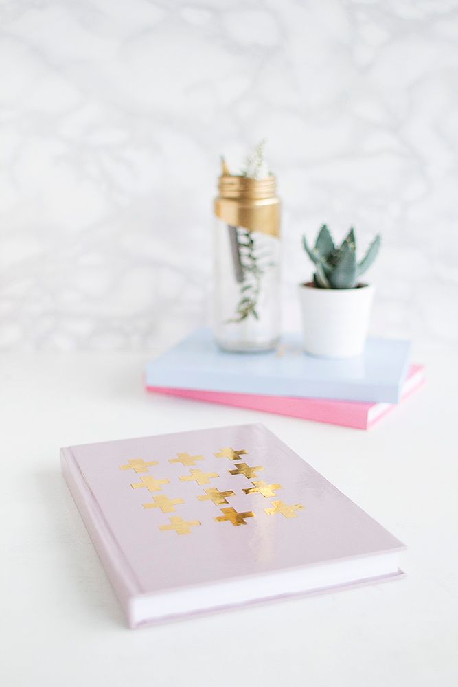 Собственно, ваш обновленный блокнот для записей готов. Вы можете менять дизайн, как вам будет удобно: круги, треугольники, капли или абстракции. Использовать золотую бумагу для декора легко и вы сможете задекорировать таким образом любое количество блокнотов и тетрадей.