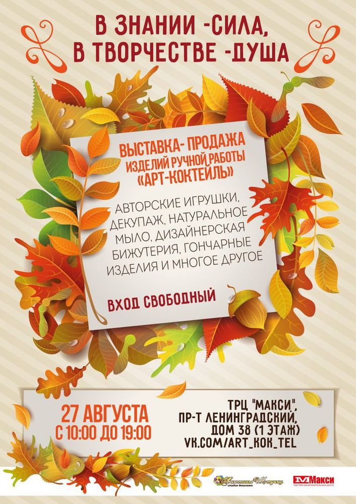 Вступайте в группу "Ярмарка изделий ручной работы "АрТ-КоКтЕйЛь: в знании - сила, в творчестве -душа":https://vk.com/art_kok_tel,