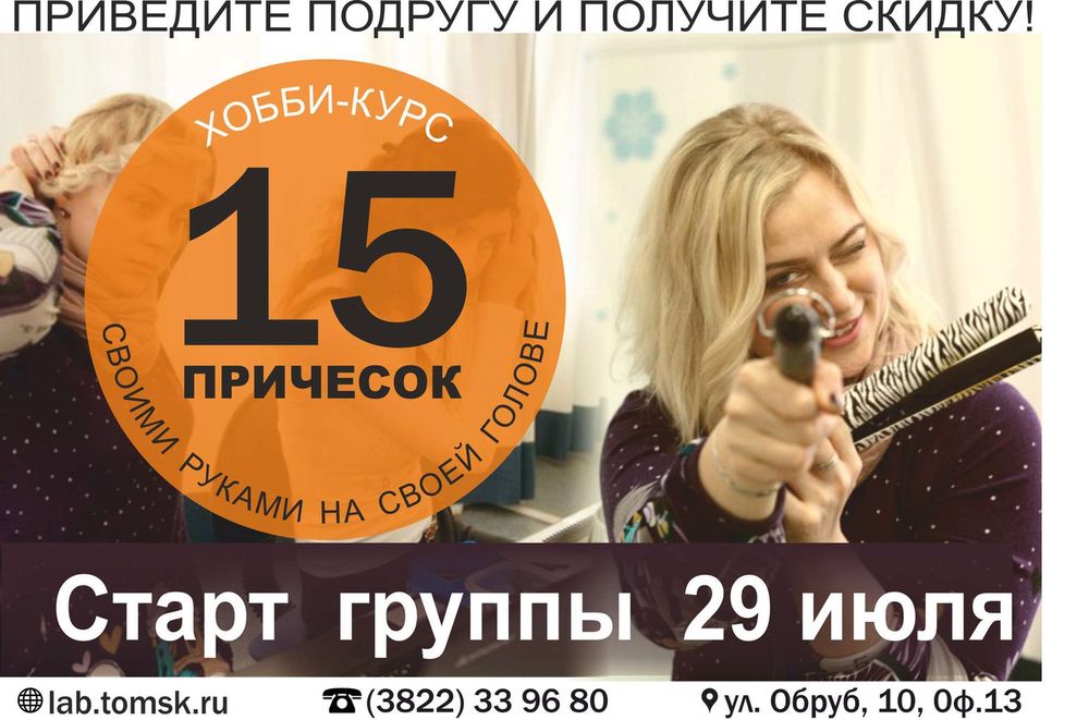 ☎ Запись по телефону 33 96 80, на сайте http://lab.tomsk.ru/hobbikurs/15haircut/ или у менеджера https://vk.com/mashnichnata