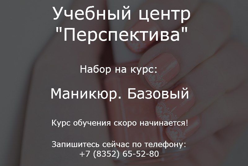 Уже 24.05.16 начало группы по маникюру (базовый - все виды маникюра) в учебном центре "Перспектива".