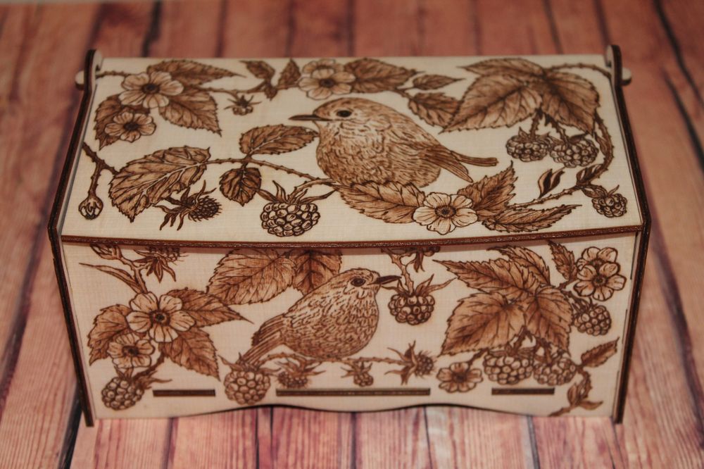 При использовании техники выжигания можно добиться получения очень эффектных и оригинальных декоративных украшений, подходящих для оформления различных шкатулок, мебели, досок и других предметов из дерева.