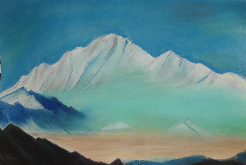 На этом занятии мы будем рисовать пастелью то, что ближе вам. Это могут быть ангелы, пейзаж или горы с репродукций картин Н.К. Рериха.