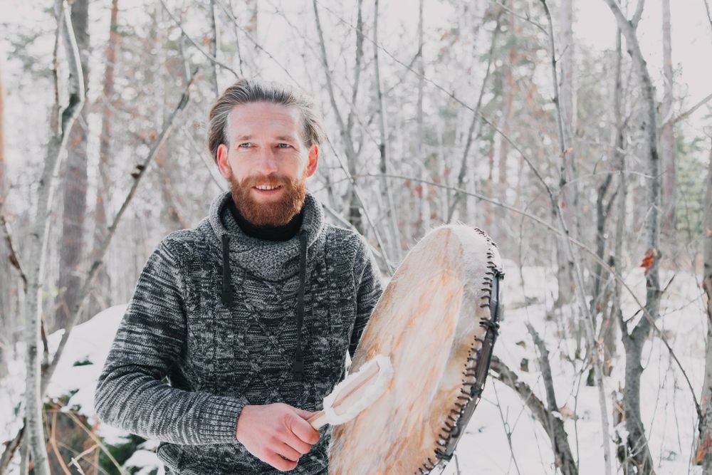 🙌На обряде создаем алтарь с огнем🔥, водой💧 и молоком💨, кладем подношения. Просим, что бы отец-небо пустил в бубен свой свет, мать-земля силу влила, приглашаем духов предков и духов помощников. Камлаем. Во время обряда в бубен входит дух-помощник🌚.