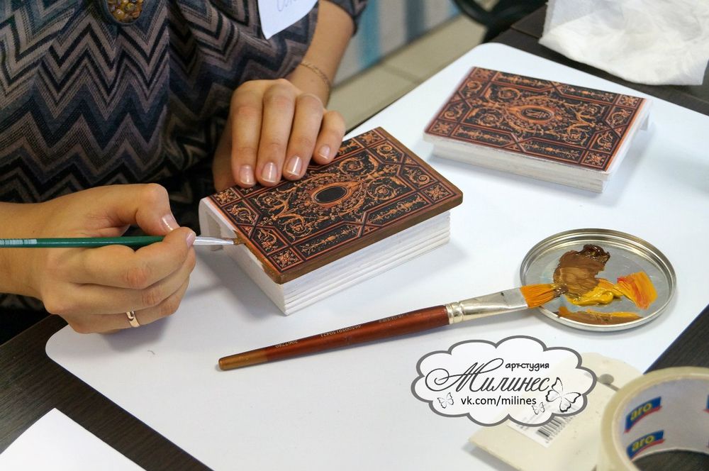 Приглашаем освоить технику декупажа в приятной компании рукодельниц и изготовить декорированную кожаную обложку 4 марта в 16:00.