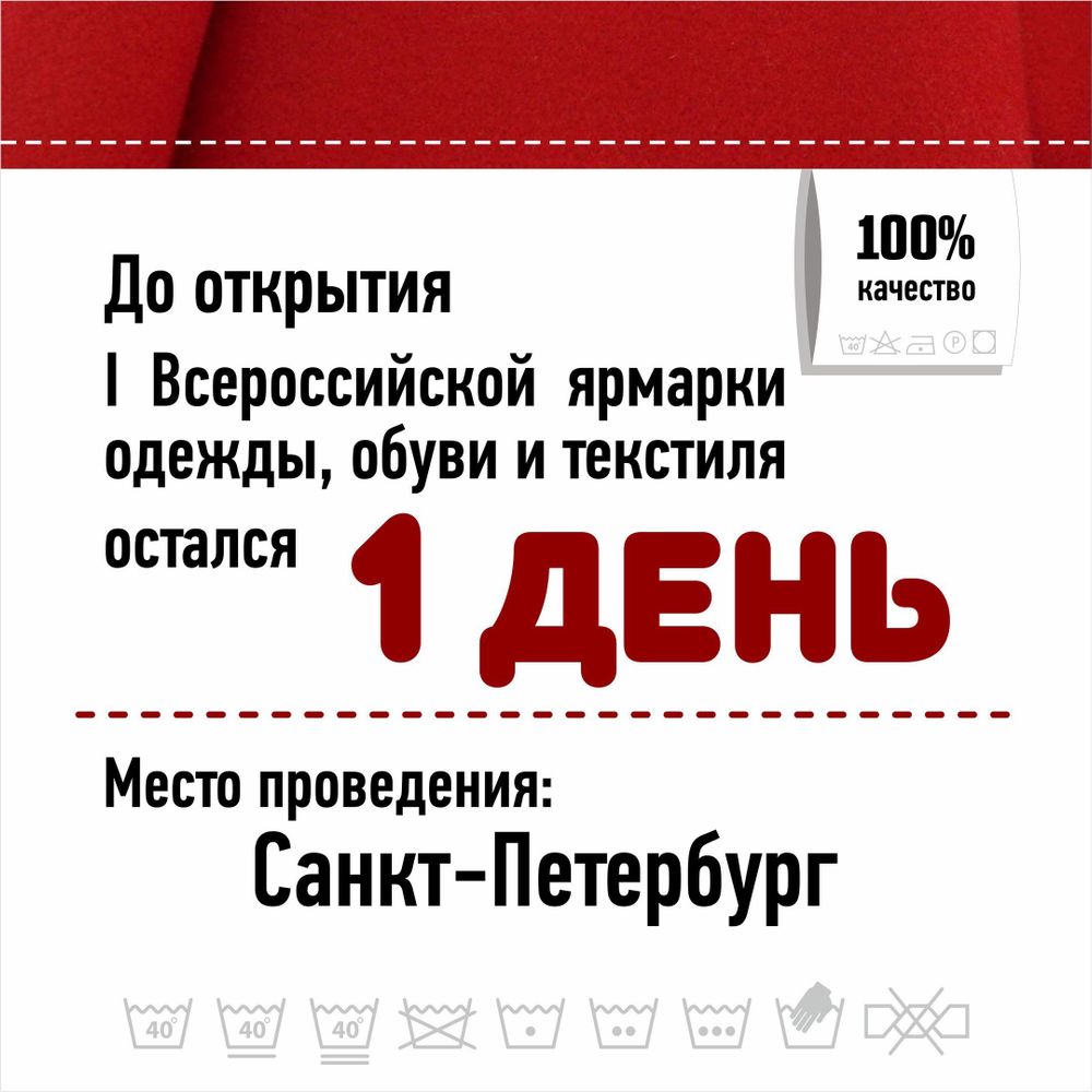 #ВНИМАНИЕ!!! До открытия Первой Всероссийской ярмарки одежды, обуви и текстиля в Санкт-Петербурге ОСТАЛСЯ 1 ДЕНЬ!🙏👚👛👘👜👠👙👢👞👔👕👖👗