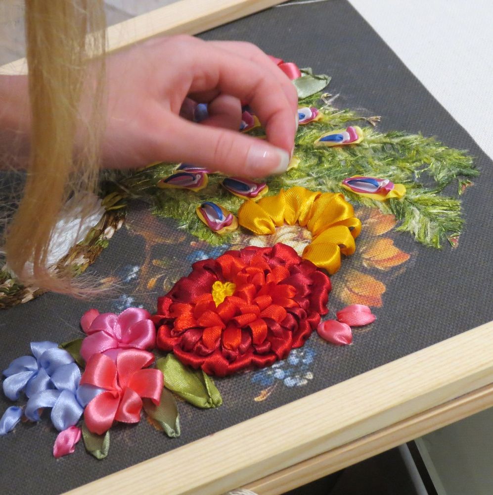 15 июля (воскресенье) 11:00-17:30 Вышивка лентами для новичков и продолжающих. 2200 руб.