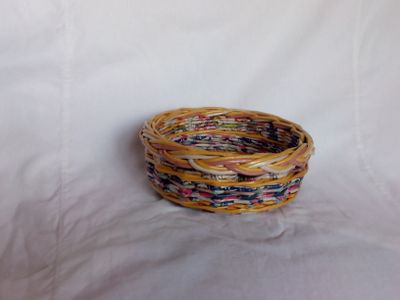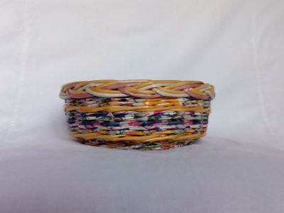 Эта конфетница, выполненная в ярких красках, станет прекрасным украшением интерьера, создаст дополнительный уют и красоту вашего дома, хорошо будет смотреться и на повседневном, и на праздничном столе. Конфетница выполнена из бумажной лозы и покрыта не токсичным акриловым лаком на водной основе. Она легкая и практичная, по своей прочности не уступает изделиям из природных материалов, а лаковое покрытие делает ее влагостойкой. Может использоваться и как элемент декора, и по прямому назначению. Также может использоваться как хлебница или сухарница. Размеры: диаметр - 15 см, высота - 6 см. Материалы: бумага, водная морилка, клей ПВА, акриловый лак. Способ ухода: по мере необходимости протирать сухой или слегка увлажненной бытовой салфеткой из нетканого материала. Конфетница может быть изготовлена в любой цветовой гамме.