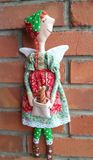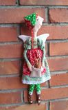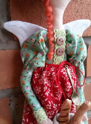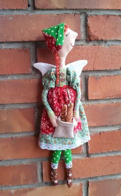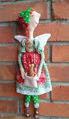 Интерьерная кукла Мотя, выполнена из хлопка, рост, 40-45 см, одежда не съемная, в руках держит багеты (соленое тесто), подвешивается за петельку.