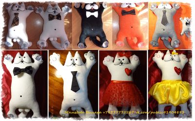 Выполнены из флиса. Размеры разные от брелка до игрушки. Цены от 200 р до 1000 р. Пример высота 30 см 900 р. Срок выполнения 1-2 дня. В авто выполняются с присосками.