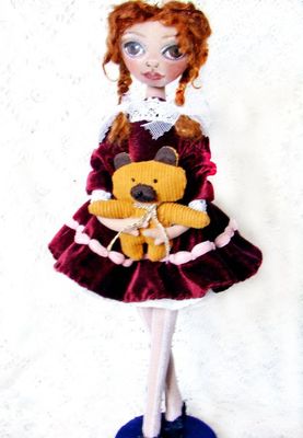 Для коллекционеров или как детская игрушка. Превосходный подарок для девочки, девушки. Кукла пошита из качественных материалов и с большим вниманием к каждой детали. Выполнена в единственном экземпляре. Высота - 32 см. Тело - хлопок. Волосы - шерсть. Одежда и аксессуары - вельвет, велюр, шифон, фатин, кружево. Лицо выполнено акриловыми красками, которые закреплены лаком. Кукла стоит на подставке. Обязательно посетите мои странички на FACEBOOK, INSTAGRAM, ВКонтакте. Facebook: https://www.facebook.com/romanovadolls Instagram: https://www.instagram.com/oksana_romanovadolls/ ВКонтакте: https://vk.com/oksana_romanovadolls Мой email: romanovadoll@gmail.com