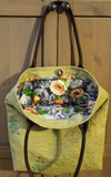 Вместительная, прочная, удобная сумка. Внешний материал - декорированный брезент, материал подкладки - сатин. Декорирование внешнего материала выполнено в технике ручной набойки по ткани. Сумка подходит для повседневного использования, легко вмещает предметы формата А4, расположенные как в длину, так и в ширину, а также, объемные вещи.Размер 38х33 см. Материалы: брезент, сатин (хлопок), кожзам, ручная набойка по ткани (акрил по ткани).