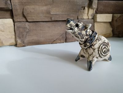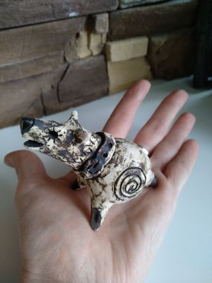 Керамическая свистулька,символ 2018года.Материал-фаянс.Покрытие -аксид меди,деталлировка-метализированная эффектарной глазурь.Доставка по почте(сумма не включена).