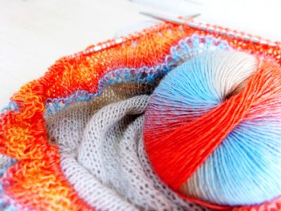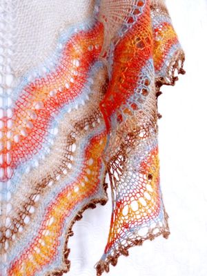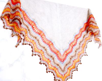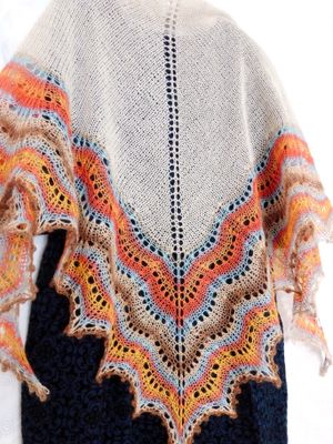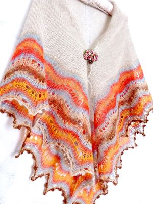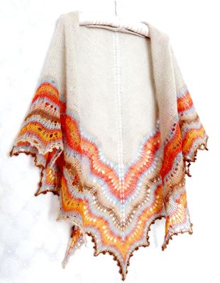 Готовая работа, в наличии! Шаль ручной работы Теплая и очень мягкая вязаная ажурная шаль натурального цвета из беби-альпаки с ажурной каймой из разноцветной шерсти мериноса с шелком. Вязаная спицами шаль имеет классическую треугольную форму. Очень мягкая и уютная). Средний размер (170 см размах, 87 см по уголку). В единственном экземпляре, без повтора в данном цвете.