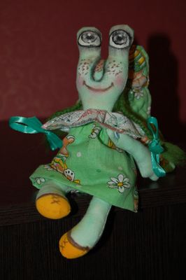 Бабочка - девочка Феона сшита мной с любовью,вручную из бязи,раскрашена акриловыми красками,волосы из шерсти для валяния,платьице и крылышки из ситца,трусики и воротничок из шитья,наполнитель - синтепон. Я у желтой бабочки Тихо-тихо спрашивал: - Бабочка, скажи мне, Кто тебя раскрашивал? Может, это лютик? Может, одуванчик? Может, желтой краской Тот соседский мальчик? Или это солнышко После скуки зимней? Кто тебя раскрашивал? Бабочка, скажи мне! Прошептала бабочка, В золото одета: - Всю меня раскрасило Лето, лето, лето!